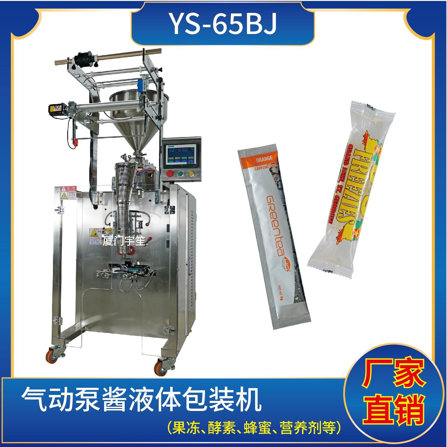 YS-65ADJ 三邊封多物料醬體包裝機特 點 1、適用于食品、醫(yī)藥、化工、化妝品行業(yè)中液體、醬料等物品的計量包裝。2、可自動完成制袋、計量、下料、封合、分切、計數(shù)、且可根據(jù)客戶要求配置打印批號等功能。3、觸摸屏操作,PLC 控制,驅(qū)動步進電機控制袋長,性能穩(wěn)定、調(diào)整方便、檢測準(zhǔn)確。智能式溫控儀,PID調(diào)節(jié),保證將溫…