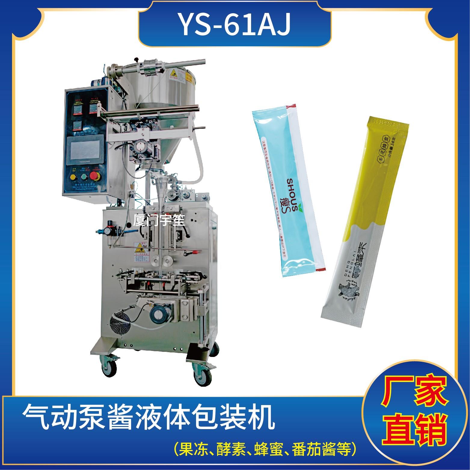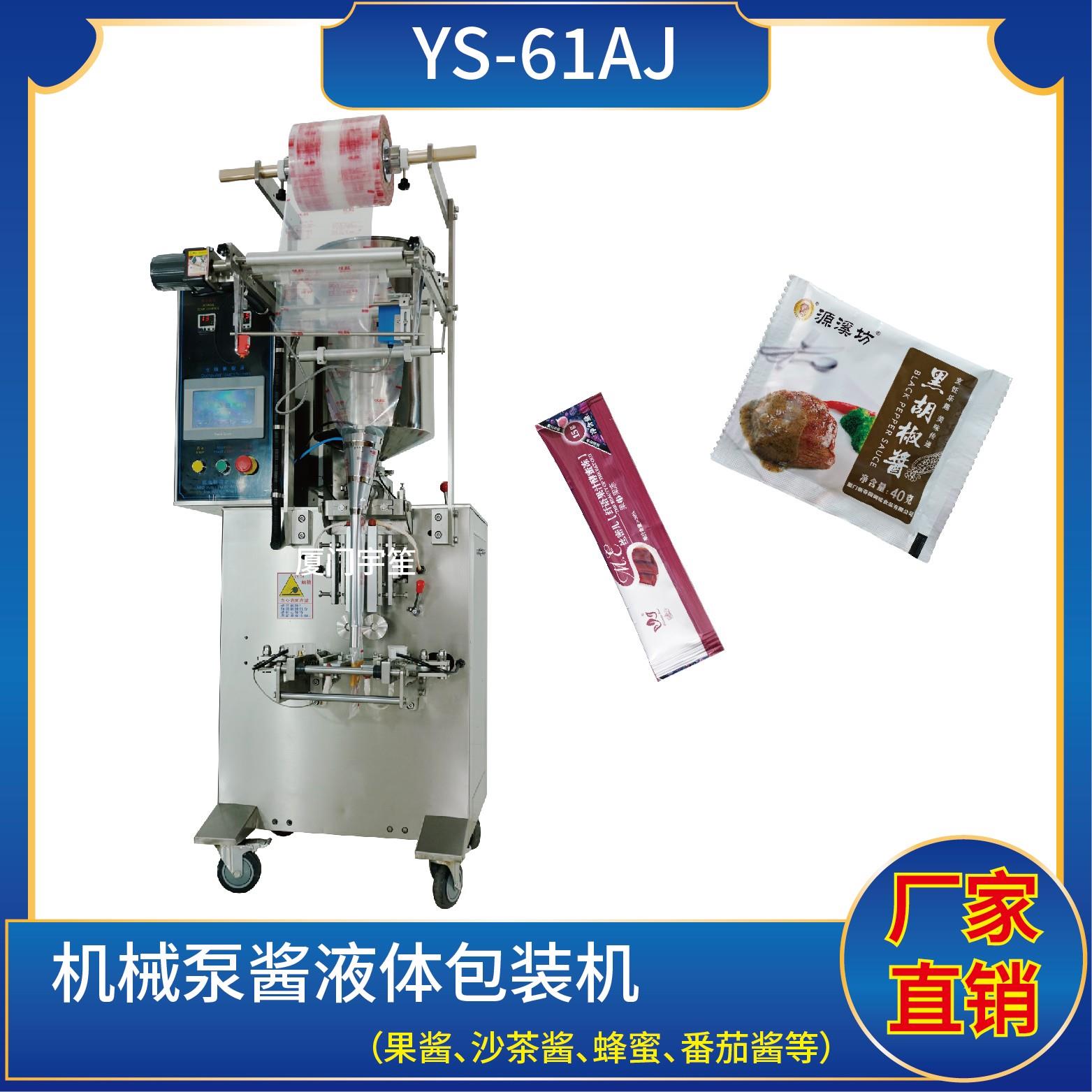 YS-61AJ 三邊封醬液體包裝機特點1、適用于食品、醫(yī)藥、化工、化妝品行業(yè)中液體、醬料物品的計量包裝。2、可自動完成制袋、計量、下料、封合、分切、計數(shù)、且可根據(jù)客戶要求配置打印批號等功能。3、觸摸屏操作,PLC 控制,驅(qū)動步進電機控制袋長,性能穩(wěn)定、調(diào)整方便、檢測準(zhǔn)確。智能式溫控儀,PID調(diào)節(jié),保證將溫度的誤差范…