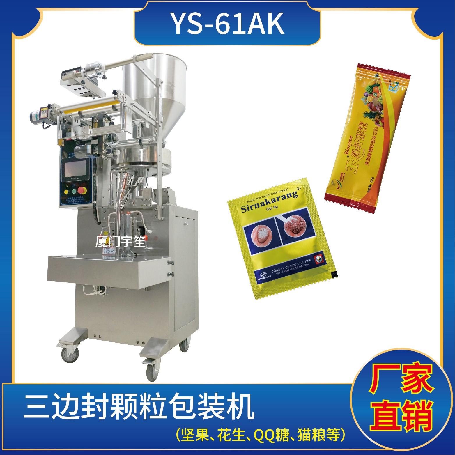 YS-40AK 三邊封顆粒自動包裝機(jī)特 點(diǎn) 1、適用于方便面行業(yè)湯包,干燥劑,沖劑,碎茶等小顆粒狀物品包裝。2、可自動完成制袋、計(jì)量、充填、封合、分切及計(jì)數(shù)等功能。3、包裝材料:茶葉濾紙、復(fù)合膜、無紡布。封口方式:三邊封技術(shù)參數(shù) 計(jì)量范圍:10 - 40 g(0.6 ~ 33 ml)制袋尺寸:長 ( L ) : 40 - 110 mm …
