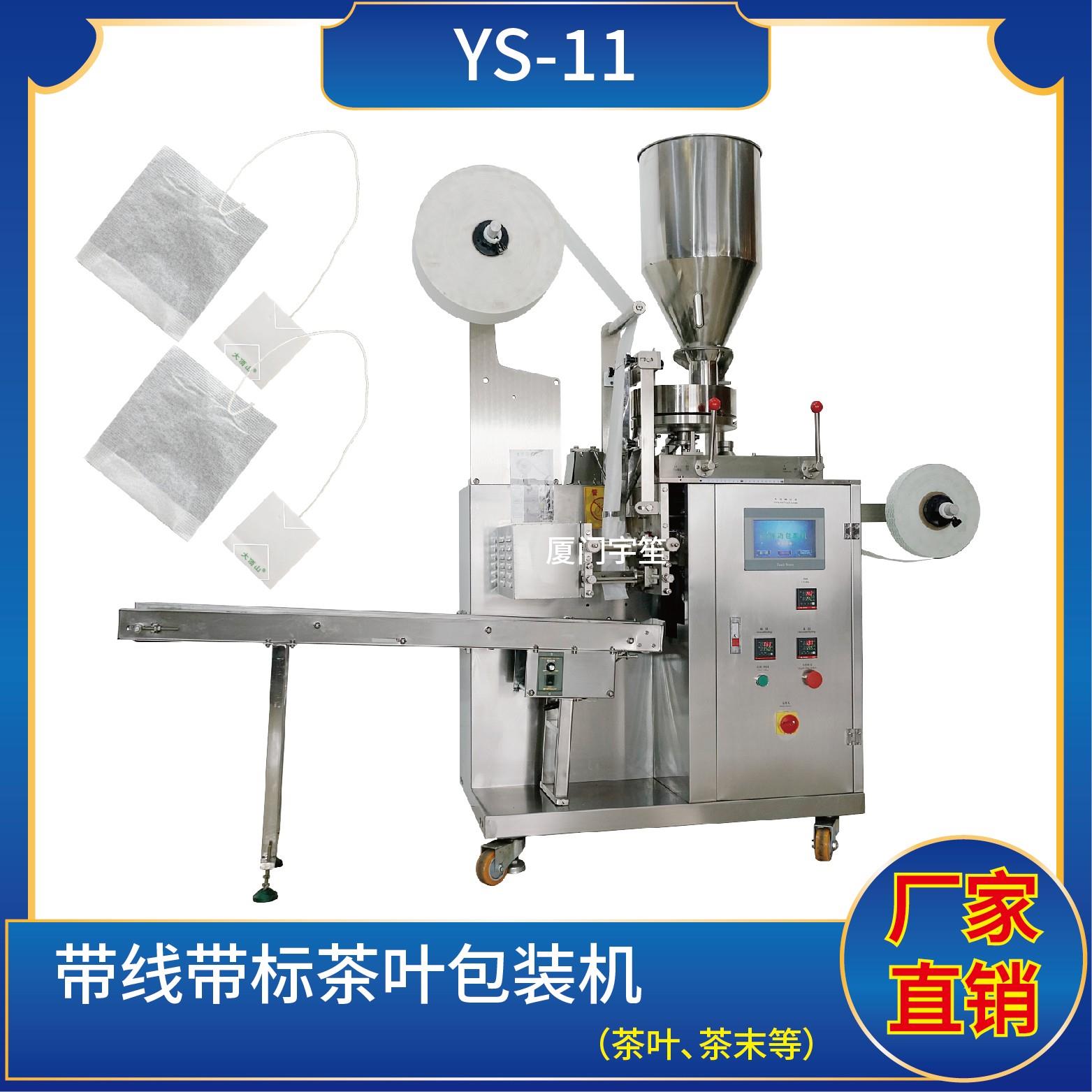 YS-11 新一代 掛線掛標(biāo)袋泡茶包裝機(jī)特 點(diǎn)1、適用于碎茶、藥茶、咖啡、植物等類似產(chǎn)品的自動包裝。2、包裝袋帶提線和吊牌,可自動完成制袋、計(jì)量、充填、封合、分切及計(jì)數(shù)等功能。3、包裝材料:茶葉濾紙、棉線、標(biāo)簽紙。封口方式 :三邊封 技術(shù)參數(shù)計(jì)量范圍:1 - 10 g(0.6 ~ 26 ml)制袋尺寸:長 ( L ) : 50 - 80 mm …
