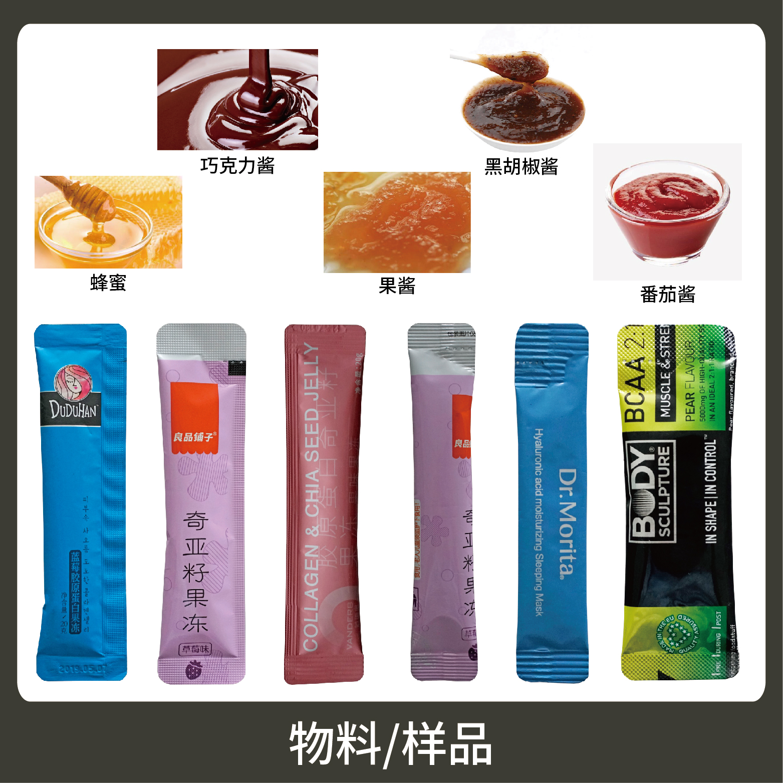 應(yīng)用:適用于醬料物品的計量包裝,如:護膚品、蜂蜜、果凍、酵素、維生素等。